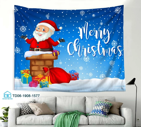 Tranh Vải Treo Tường Trang Trí Noel Ông Già Noel Merry Christmas Mẫu 2
