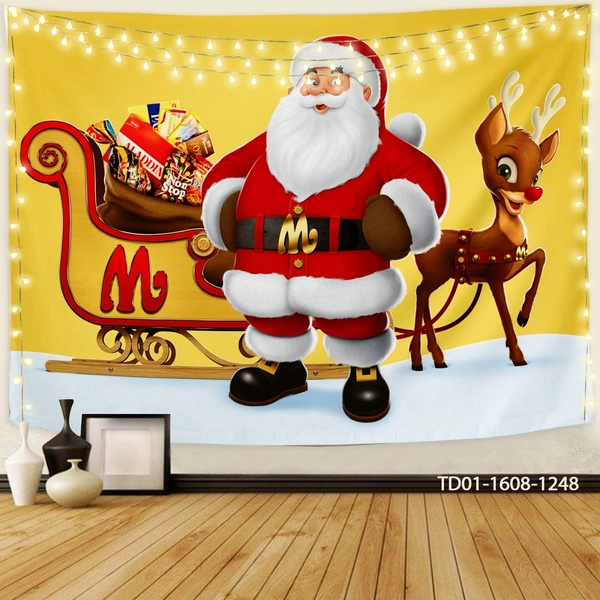 Tranh Vải Treo Tường Trang Trí Noel Xe Tuần Lộc Và Ông Già Noel Mẫu 5