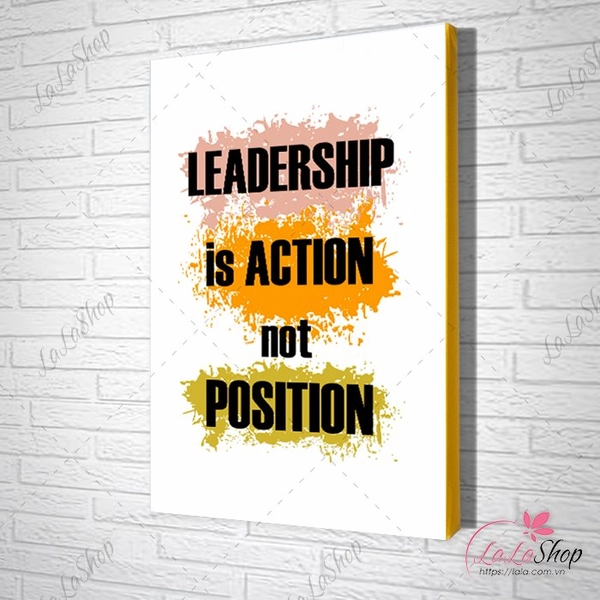 Tranh Văn Phòng "Leadership is action, not position" truyền tải một thông điệp mạnh mẽ về bản chất thực sự của lãnh đạo. Với thiết kế hiện đại và đầy cảm hứng, bức tranh không chỉ là một tác phẩm nghệ thuật, mà còn là nguồn động lực thúc đẩy tinh thần làm việc và khuyến khích mọi người hành động tích cực, bất kể vị trí nào của họ trong tổ chức.
