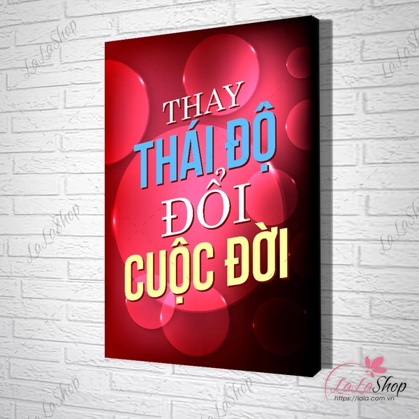 Bức tranh ""Thay Thái Độ, Đổi Cuộc Đời"" là một lời nhắc nhở mạnh mẽ về sức mạnh của thái độ tích cực. Với phong cách thiết kế hiện đại, tối giản, bức tranh truyền tải thông điệp rằng mọi thay đổi trong cuộc sống đều bắt đầu từ cách nhìn nhận của chính mình. Đây là lựa chọn tuyệt vời để treo trong không gian làm việc, giúp bạn duy trì động lực và tinh thần lạc quan yêu đời làm việc hăng say hết mình.
