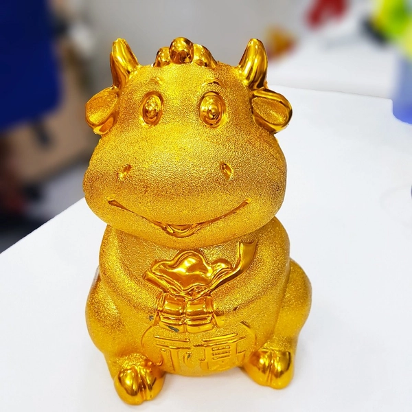 Trâu vàng tiết kiệm trang trí tết biểu tượng cho sự no đủ, an nhàn và thảnh thơi, đây là mẫu tượng được nhiều doanh nhân tuổi sửu ưa thích để bàn phong thuỷ và làm quà tặng cho bạn bè, đối tác, khách hàng.