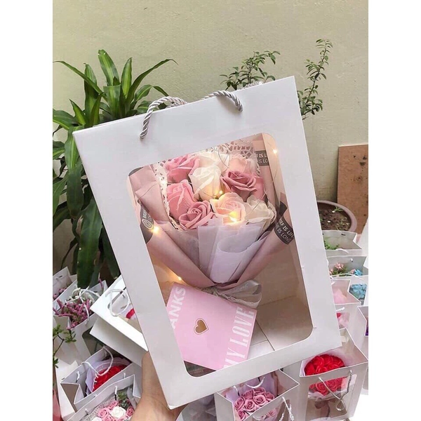 Túi giấy mặt kiếng đựng hoa sáp làm quà tặng