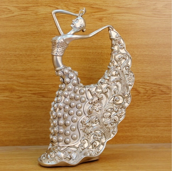 Tượng cô gái cầm váy bạc với hình dáng và màu sắc trẻ trung sẽ tạo cho căn phòng của bạn thêm xinh xắn, đáng yêu.