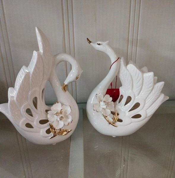 Tượng đôi thiên nga và hoa với hình dáng mới lạ và đầy độc đáo, thích hợp để làm quà tặng và trang trí.