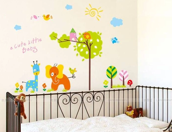 Decal dán tường vườn thú 1 được thiết kế như 1 sở thú thu nhỏ trong phòng bé hòa trong màu sắc cây cỏ, các con vật như là những người bạn thân thiết với bé ngay trong căn phòng đáng yêu