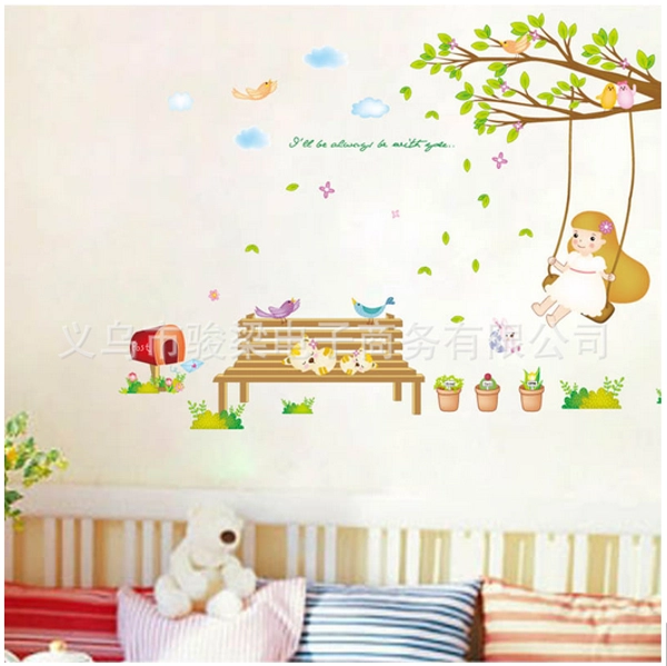 Decal dán tường xích đu kỷ niệm với họa tiết xinh xắn, tạo vẻ đẹp sinh động, cuốn hút cho không gian nhà ở.